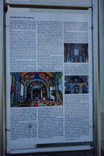 Begonnen hat alles vor mehr als 40 Jahren, als sich die Kirche in einem bedrohlichen Verfallszustand befand, und der engagierte „neue" Pfarrer der Gemeinde, Alois Polaschek, darum kämpfte, sie für die Nachwelt zu erhalten. Im Zuge der Renovierungsarbeiten entstand in dem aufgeschlossenen Pfarrer der Wunsch, den Innenraum von einem Künstler ausmalen zu lassen, um das Interesse für die Josefiverehrung neu zu erwecken. Er nahm Kontakt mit dem damals 25jährigen Maler Jakob Laub auf, der gerade sein Akademiestudium abgeschlossen hatte und mit seiner ersten Einzelausstellung aufgefallen war. Laub gehörte im Umfeld von Otto Mauer, Rudolf Szyszkowitz und Herbert Boeckl zu jenen Malern, die nach Kriegsende als eine Avantgarde christlicher Kunst auftraten. ...