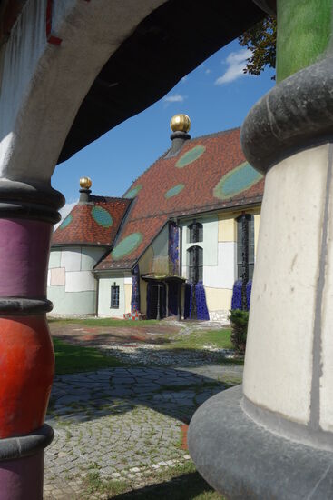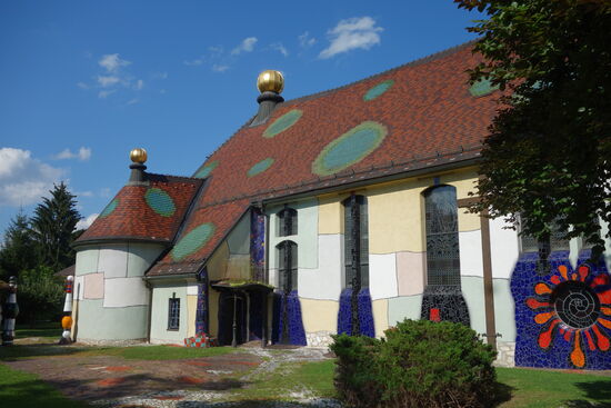 Wenige Kilometer nördlich besuchen wir sodann die von Hundertwasser (außen) gestaltete Kirche in Bärnbach.