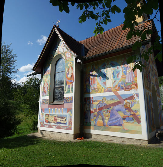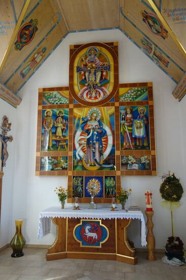 Die Tregister Dorfkapelle wurde vom Künstler Franz Weiß, der aus einem Nachbarort stammt, komplett mit kunterbunten Motiven ausgestaltet. Der Altar, geweiht der Maria Knotenlöserin, enthält u. a. den Schriftzug „Tschernobyl", eventuell ein Hinweis des Künstlers darauf, dass wir bereits mitten in der Apokalypse leben.