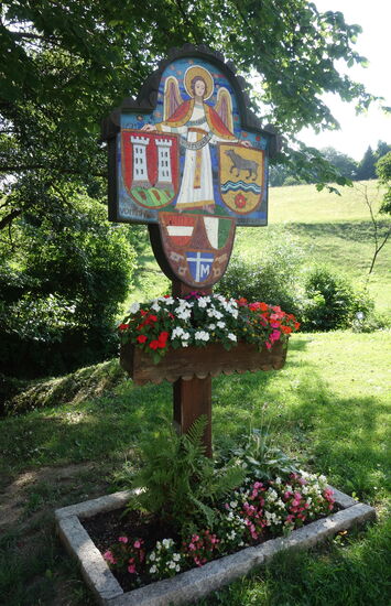Wir parken an der Hauptstrasse, wo man zwei Stunden frei parken kann, wenn man eine Parkscheibe auslegt; als wir losfahren wollen, hält uns eine freundlcihe Politesse an und erklärt, dass unsere elektronische Parkscheibe in Österreich 'verboten' ist und man eine papierne auslegen muß. Auf ein Protokoll verzichtet sie großzügiger Weise.