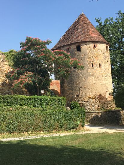 Vom Markplatz aus sind es wenige Meter zum Schloß Hartberg, das heute als Hotel betrieben wird - jedoch wohl wegen Corona noch geschlossen ist