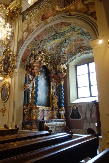 Die Sakristei gilt als künstlerisch wertvollster Raum des Stiftes. In den Jahren 1715-16 schuf der geniale Stiftsmaler Johann Cyriak Hackhofer hier sein Meisterwerk. Der „Höllensturz", sein wohl bekanntestes Werk, zeigt den Sturz der personifizierten menschlichen Laster wie z.B. Geiz, Hochmut, Unzucht und Unmäßigkeit.
