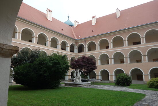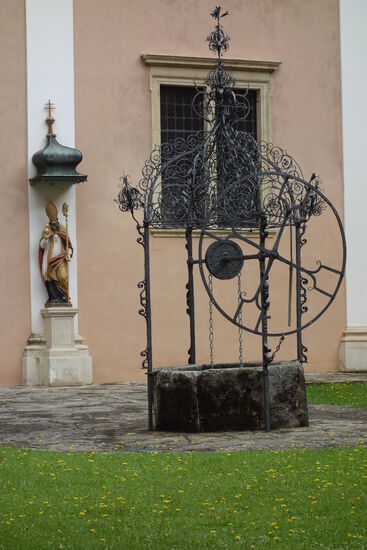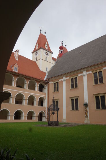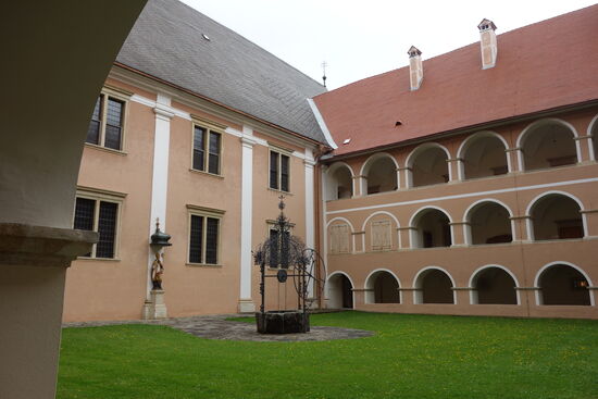 Das Klausurgebäude, in dem sich die Wohnungen der Chorherren befinden, wurde in den Jahren 1625-35 um einen quadratischen Innenhof errichtet. Den Hof schmücken eine Sandsteinplasiik des hl. Augustinus (um 1700) und ein 1370 gegrabener, 15m tiefer Brunnen mit Sandsteineinfassung und eiserner Brunnenlaube.