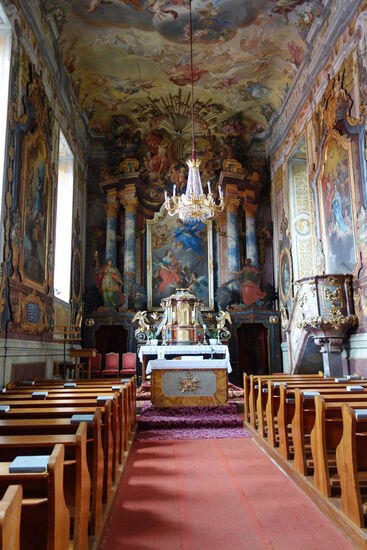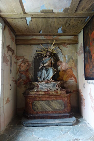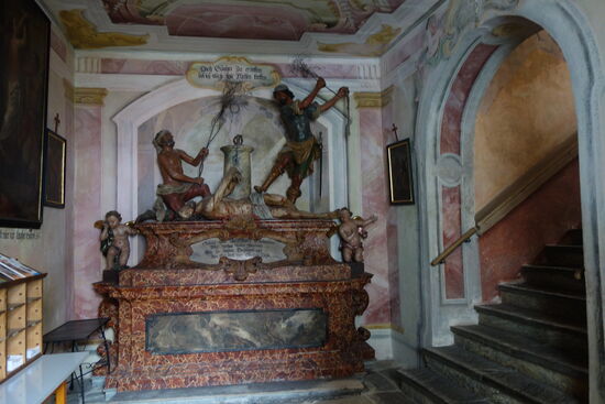 Obwohl wir per telefon nicht eruieren konnten, ob man außerhalb einer Führung - die nur einmal pro Woche am Sonntag um 14.00 Uhr stattfindet - besichtigen kann, fahren wir auf Verdacht hin. Und es lohnt sich! Im Prinzip kann man alles sehen - Kirche offen - was es zu bewundern gibt.