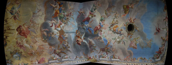 Das Fresko zeigt einen himmlischen Frauenchor, der zum Empfang der Pfarrpatronin hl. Katharina von Alexandrien singt und spielt. Es ist das wichtigste Beispiel für barocke lllusionsmalereien in der Steiermark.
