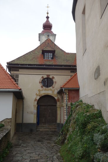 Wegen dieser Gefährdungen veranlasste der Vorauer Propst Philipp Lelsl, die Burg in eine Art Klosterburg umzubauen. Der Wehrturm wurde zu einem Kirchturm,und der Rittersaal wurde in die jetzige Kirche umgestaltet. Diese wurde vom Stiftsmaler Johann Cyriak Hackhofer, der auch in anderen Orten der Oststeiermark wirkte, mit zahlreichen Fresken ausgestattet.. Eine Besonderheit der Kirche ist der sogenannte „Festenburger Frauenhimmel".