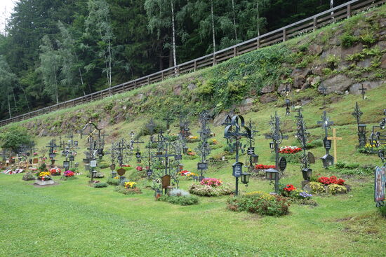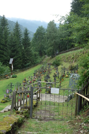 Bevor wir den Burgsporn verlassen müpssen wir noch einen besonderen Friedhof anschauen. Leider fängt es zum ersten mal auf der Reise während unserer Unternehmungen leicht an zu regnen.