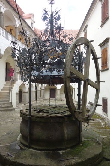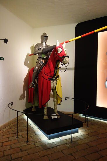 Der Renaissance-Arkadenhof ist Ausgangspunkt für die Besichtigung der Waffenkammer mit einer umfangreichen Sammlung von Rüstungen, Schwertern und Schusswaffen vom 15. bis 17. Jh., die wir im Schnelldurchgang anschauen.
