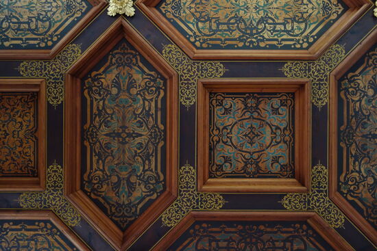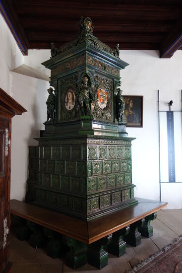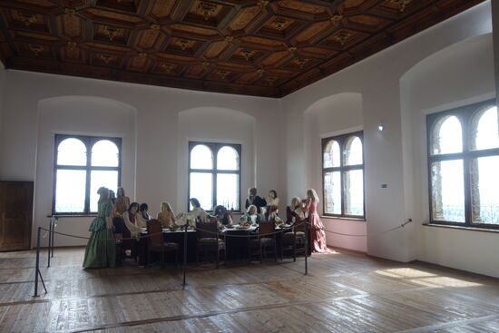 Ein Highlight ist der um 1600 geschaffene Rittersaal mit prächtigen Holzintarsien und einer beeindruckenden Kassettendecke.