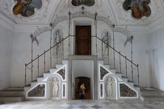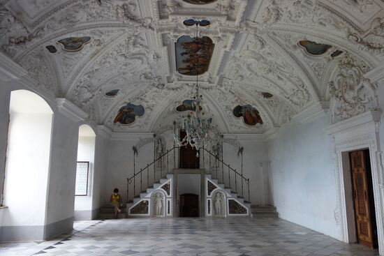 Eine weitere Attraktion ist der Weiße Saal: Der barocke Speisesaal im wurde von Freifrau von Galler in Auftrag gegeben und 1658 vollendet.
