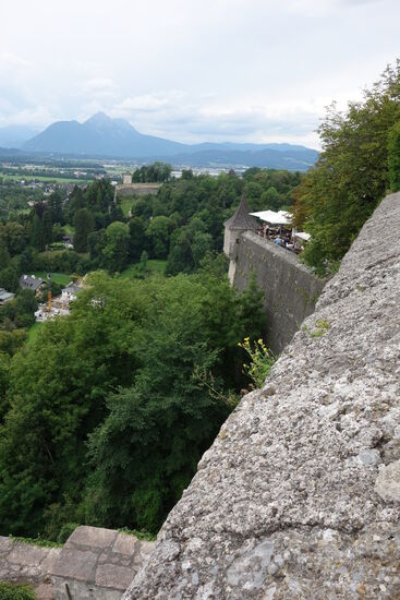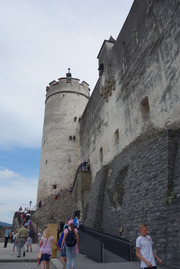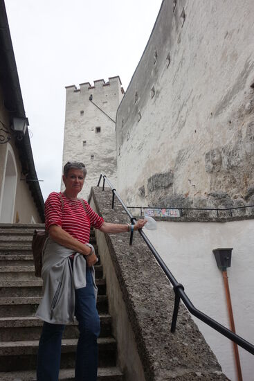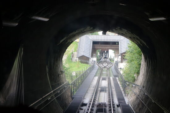 Nach dem Kauf der Eintrittskarte - wieder einmal ein Kombiticket höchster Kategorie, da wir die Fürstenzimmer sehen wollen - fahren wir mit dem Schrägaufzug 'Tröpferlbahn' bis zur Hasengrabenbastei hinauf.
