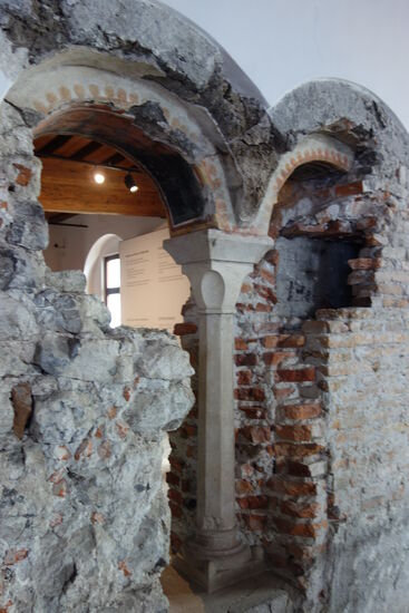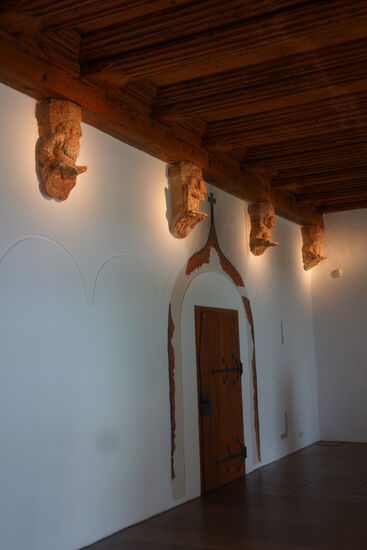 Auf der gegenüber liegenden Seitie gab es auch eine Rundbogen-Arkade. Diese Bögen sind heute nicht mehr zu sehen. Im 16. Jahrhundert hat sich in diesem Raum das Büro vom Pfleger - dem Verwalter der Burg - befunden.