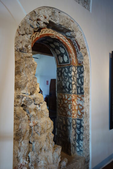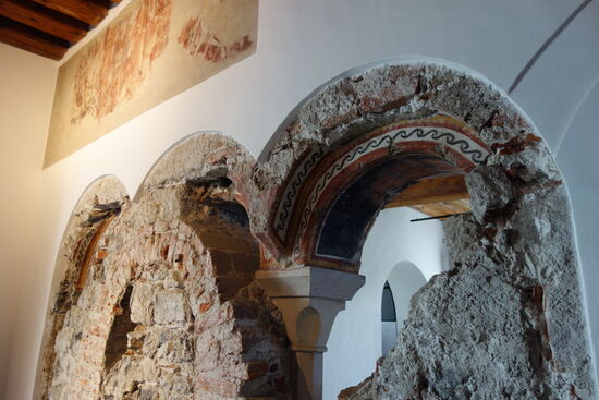 Die Rundbogenarkade wurde bei einer Renovierung 1998 entdeckt. Sie besteht aus 6 Bögen und hat eine bunte Bemalung.