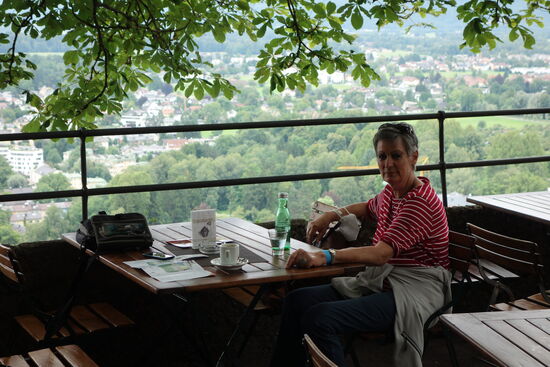 Nach erfolgter Besichtigung müssen wir mal eine Pause machen und wählen hierzu die Burgschänke mit Ausblick auf die südlichen Stadtviertel