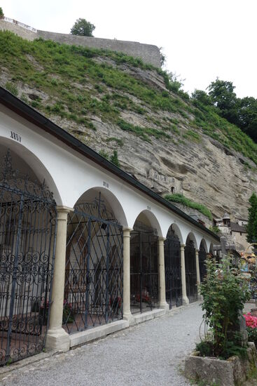 Über den Gruftarkaden befinden sich im Mönchsberg Felshöhlen (alte Kapellen samt einer Einsiedelei), die seit dem 17. Jahrhundert fälschlicherweise als Katakomben bezeichnet werden.