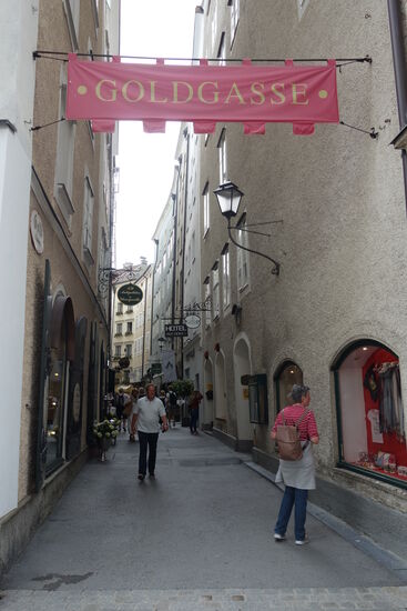 Wir gehen durch die Goldgasse, die uns schon wieder zu belebt ist.