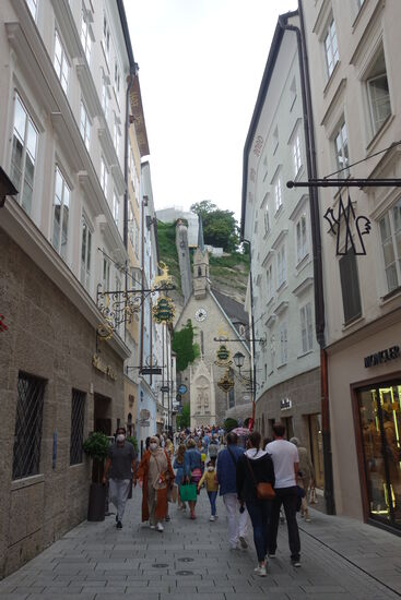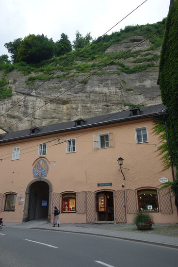 am Ende der Goldgasse befndet sich der Mönchsbergaufzug, der zum Museum der Moderne auf dem gleichnamigen berg führt.
