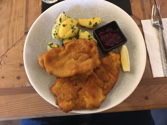 Dort können wir dann in aller Ruhe uinser Abendessen genießen; dem letzten Abend in Österreich gehört dann für mich ein Wiener Schnitzel.