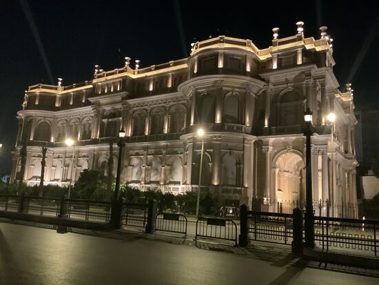 Jedenfalls schlendere ich abends durch das Zentrum, sehe den Nil, der viel kleiner ist als erwartet, mit bunt beleuchteten Touristenbooten darauf, lerne, dass da eine Insel mitten in der Stadt ist mit vielen Freizeiteinrichtungen, sogar Schwimmbad und Reitanlage. Man könnte einen Happen essen, aber ich schlendere zum berühmten Tahrir-Platz hinüber, wo sogar Pferdekutschen (wienerisch Fiaker) ihre Dienste feilbieten. Der Platz selber ist ziemlich menschenleer (von Autos abgesehen), irgend jemand erklärt mir, dass ich mich nicht niedersetzen soll, naja, und dann ist da eben ein Obelisk und ein paar beleuchtete große Gebäude. Ich begebe mich bald in die Metro, wo fast niemand einen Mundschutz trägt, und fahre wieder hinaus in die Vorstadt, nach Nozha, von wo es eine Stunde Fußmarsch zur Unterkunft ist. An der Station herrscht hektische Betriebsamkeit, sie liegt an einer größeren Straßenkreuzung und nebst Kiosken, Straßenhändlern und Taxis halten auch pausenlos Minibusse, um Fahrgäste aufzunehmen oder auszuspucken. Die mitternächtliche Wanderung entlang der fünfspurigen Straße bietet noch einen ungewöhnlichen Anblick: Auf einer winzigen Grünfläche an einer Ausfahrt treffen sich Familien zum Picknick. Irgendwie logisch, um diese Zeit brennt die Sonne am wenigsten herunter, und wenn die Kinder noch nicht schlafen wollen …