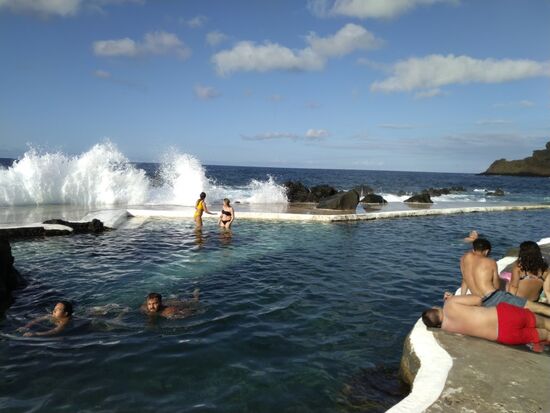 Das Bad ist so angelegt, dass die Meereswellen bei entsprechendem Wellengang die Umrandung überspülten....das war ein Riesenspaß für alle, sich dort von den Wellen wegspülen zu lassen.