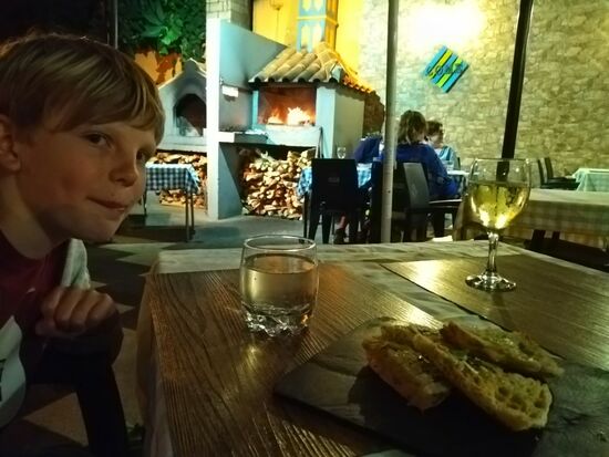 Zum Abendessen das Knobibrot muss einfach sein, das ist so lecker. Im Hingergrund brutzelt gerade mein Espetada auf dem Grill.
