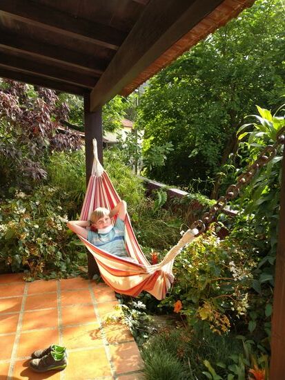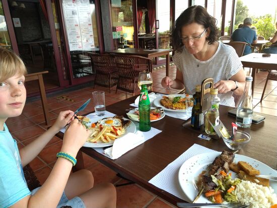Abends nur ein paar Meter weiter in einem Gartenrestaurant lecker gegessen.