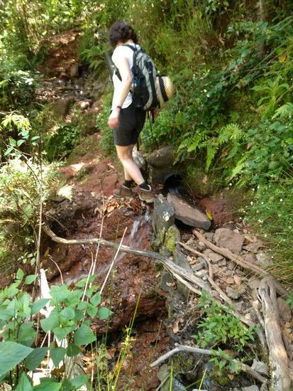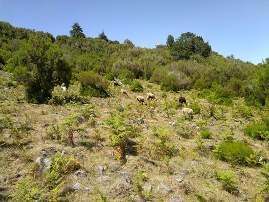 Mangels Alternativen wollten wir oben dem 35-km-Hinweis folgen, kamen dann an einen Picknickplatz, der ganz gut belegt war, um dann mit wiederkehrendem Funksignal festzustellen – falsche Richtung. Falls jemand diese Tour nachwandert, dann Richtung der Stallungen halten, daran ein paar hundert Meter vorbei, dann kommt ein Pfahl ohne Hinweis, dort links abbiegen. Nachfolgend geht es die eben bewältigten Höhenmeter steil bergab in der madeirischen Art von Wegen mit Rundstufen.