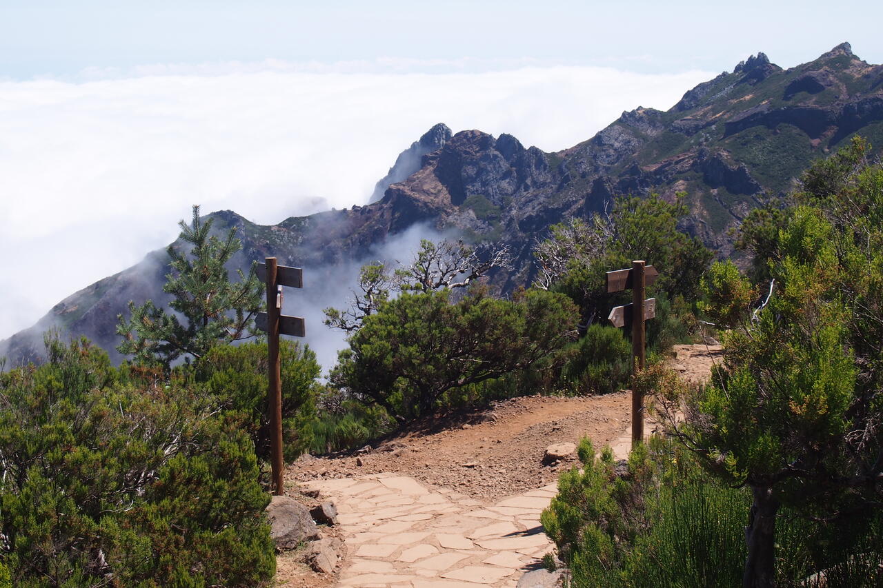 Für ambitioniertere Wanderer gibt es verschiedenste Routen die den Pico Ruivo einbinden, teilweise auch noch den Pico Areeiro. An einer HInweistafel sah ich eine Tour von Ilha aus, eine Strecke nur 8,2 km…aber weit über 1.000 Höhenmeter…nur eine Richtung: bergan. Herausforderungen gibt´s genug.