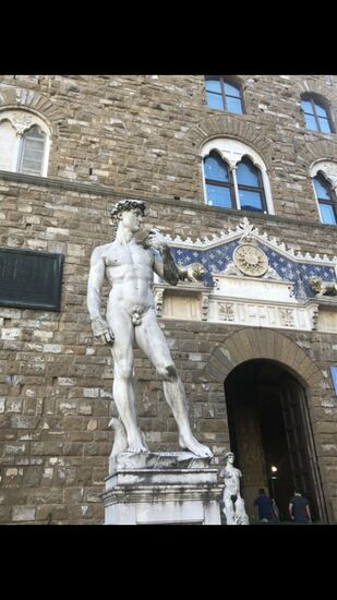 An den Uffizien mussten wir wie erwartet etwas länger Schlange stehen, mein Sohn schaffte es in der Zeit einie Kapitel seines Harry Potter Buches zu lesen.
