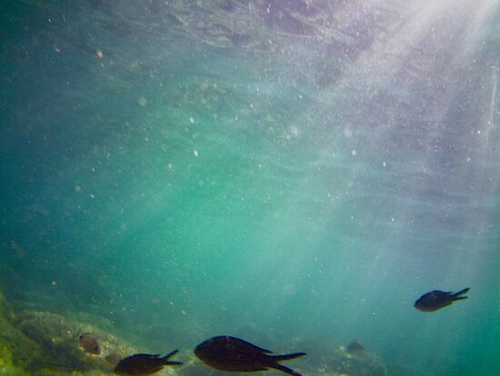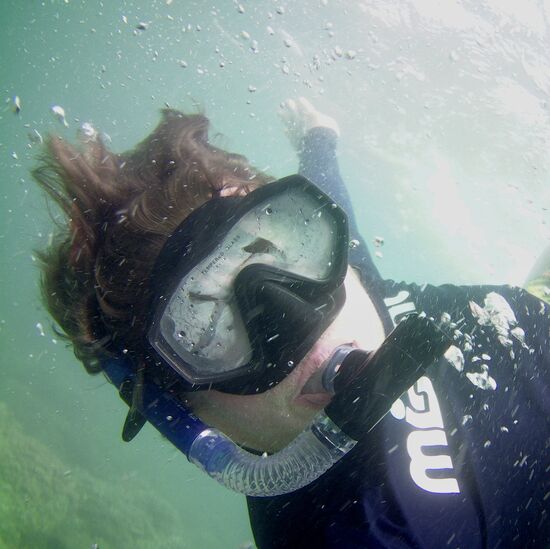 Vor 2 Jahren hatte ich mir eine Action Cam gekauft, um Unterwasseraufnahmen zu machen. Leider hatte ich bis dahin keine Möglichkeit gehabt, irgendwo zu schnorcheln, wo man tolle Fotos machen kann. Endlich sollte der Moment kommen. Ich zog also meine Flossen an, nahm die Cam in die Hand und wollte ins Wasser gehen, wo es gerade relativ starken Wellengang gab. Dann passierten 3 Dinge auf einmal: Die Hülle meiner Action Cam öffnete (wie? Keine Ahnung) und die Kamera wurde nass und war kaputt. Durch die Wellen wurde es schwer über die Steine zum Wasser zu gehen und mir rissen an beiden dicken Zehen Teile des Nagels ab - was sehr weh tat und mein Schnorcheln fiel herunter und ich fand ihn nicht mehr.