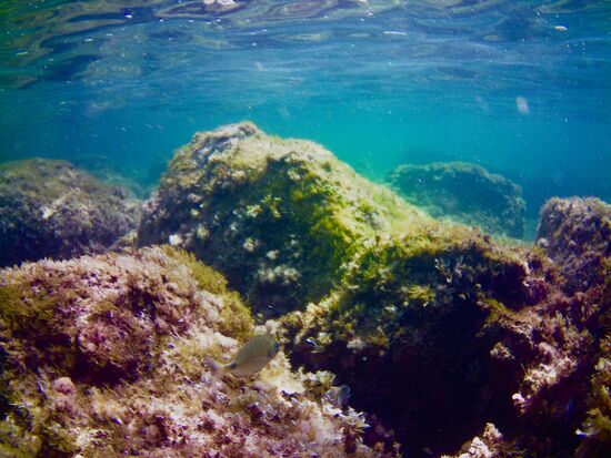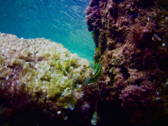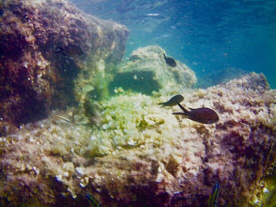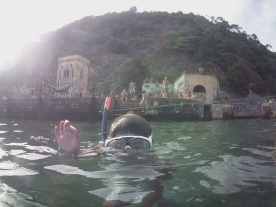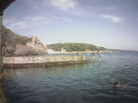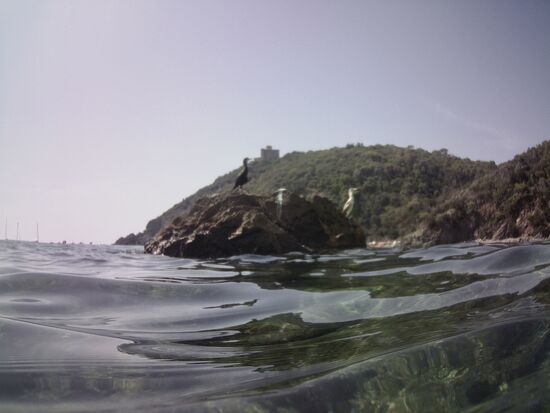 In den Pfingstferien hatte mein Sohn im Bodensee schnorcheln gelernt und wir wollten unbedingt auch in der Toskana schnorcheln. So bekam ich in einem Online-Toskana-Forum auf Nachfrage den Tipp, nach Quercianella zu fahren. Die Aussicht unter Wasser (und über Wasser) war so toll, dass wir noch 2 Mal wiederkamen.
