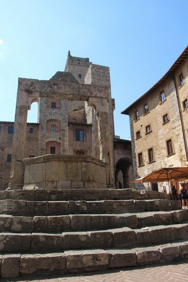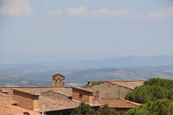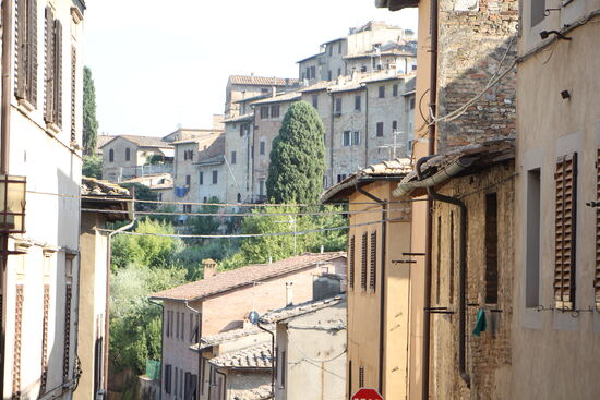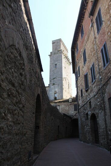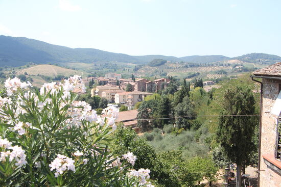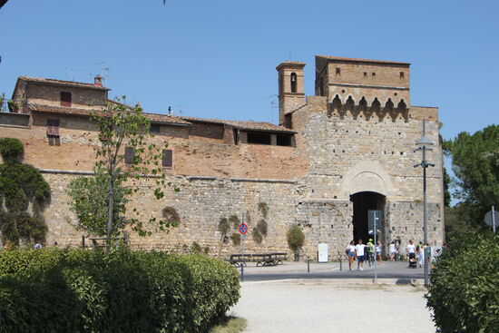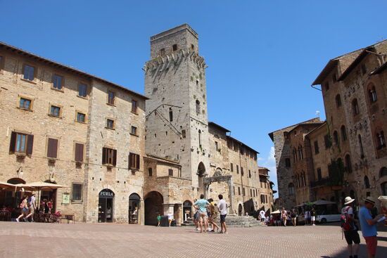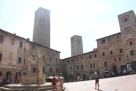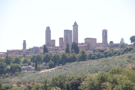 Der Ausflug nach San Gimignano (die Stadt der Türme, oder auch das mittelalterliche Manhattan) - etwa zwei Stunden Fahrt - südlich von Lucca. Die Fahrtstrecke alleine war schon sehr sehenswert. Hier erblickten wir die typischen Landschaften der Toskana, wie sie als kitschiges Postkartenbild so bekannt sind. Es ging vorbei an Weinfeldern und Olivenhainen. Schlendern durch San Giminano ist sehr schön, auch wenn es diesen speziellen Sommer etwas zu heiß war. Als Vegetarier muss man allerdings manchmal den Atem etwas anhalten - den dann geht man vorbei an einer der Wildschweinblutwurstläden, die etwas aufdringlich "duften".
