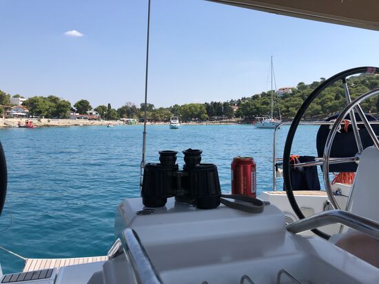 Auch an diesem Tag mussten wir einen Einkaufsstopp einlegen, weil wir einige Dinge immer noch nicht gekauft hatten. Dazu ankerten wir kurz in einer Bucht am Beach Slanica. Die 3er Einkaufscrew fuhr mit dem Dingi an Land, während der Rest der Crew wartete.