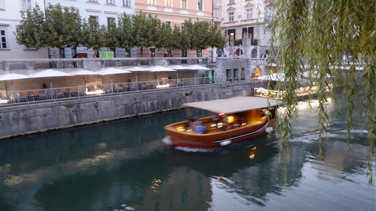 Viele gemütliche Straßenlokale laden entlang auf beiden Seiten des kleinen Flusses Ljublanica zum Essen und Trinken ein. Das Publikum eher jung und urban genoss hier den Abend und versprühte eine angenehme Lebendigkeit ohne viel Lärm.