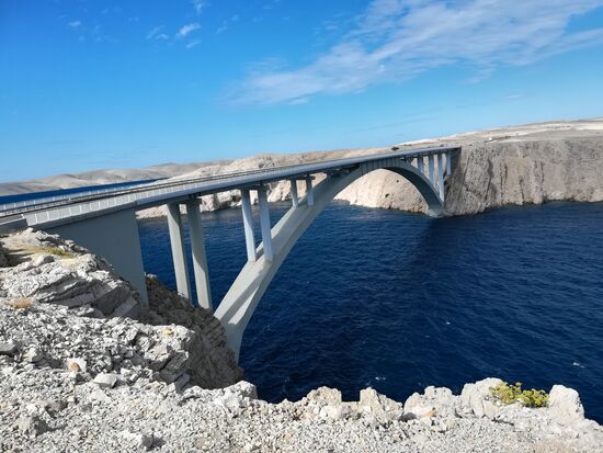 Für die Fahrt nach Istrien wählten wir die Route über die Insel Pag. Im Norden von Zadar führt eine Brücke auf die karge Insel, die grandios aus dem tiefblauen Meer ragt. Die Strecke quer durch die Insel bis zum Fährhafen Zigljen ist wunderschön und erlaubt immer wieder einen fantastischen Blick aufs Meer und umliegenden Inseln. Ein tolles Erlebnis!