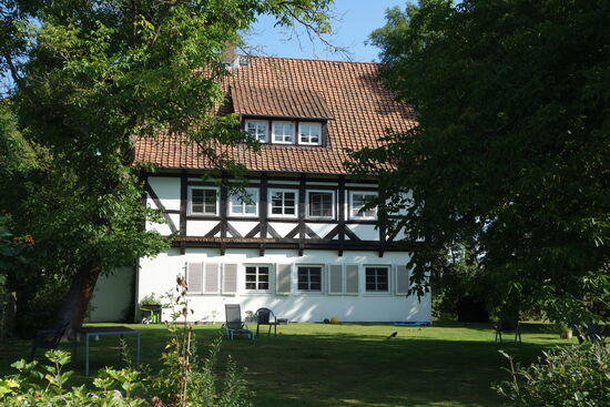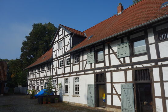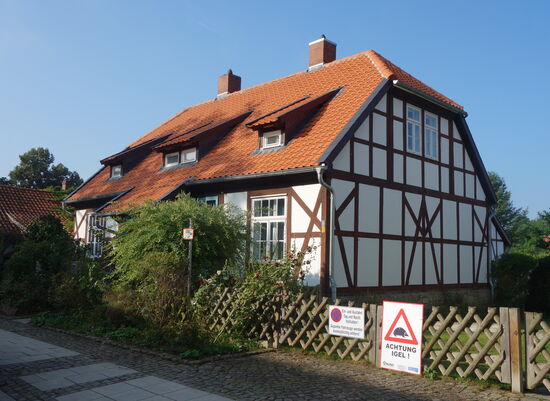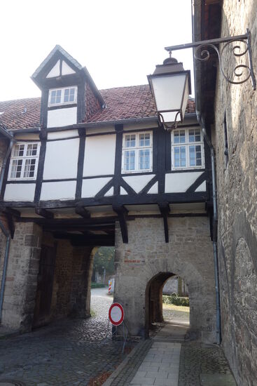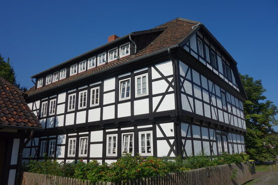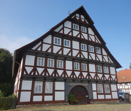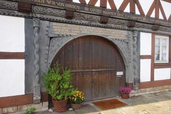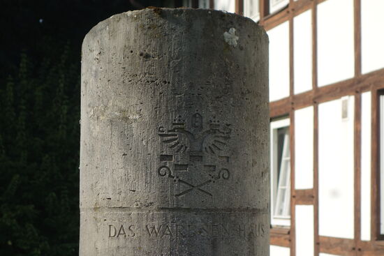 In dem Viertel alter Bauernhäuser aus dem Weserbergland findet man zahlreiche Säulen in den Gärten, die auf das Alter der Gebäude schließen lassen und Wappen tragen. .