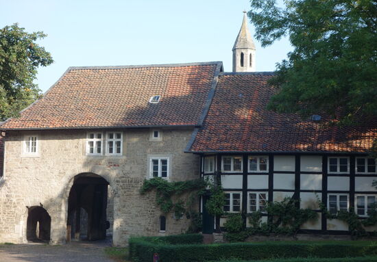 Die Klosterpforte aus der zweiten Hälfte des 12. Jahrhunderts war der einzige Zugang zu dem mit einer Mauer eingefriedeten Klosterbezirk. Von seiner Vorhalle sind nur die Seitenwände mit den vermauerten Arkaden erhalten geblieben, vom Torhaus selbst die Außenmauern aus dem 3. Viertel des 13. Jhs.. Im Torhaus saß der Pförtner, der die Fremden, insbesondere die Pilger, empfing und versorgte, östlich vom Torhaus steht die Frauen- oder Fremdenkapelle (13. Jh.). Bis zum 15. Jahrhundert stand sie frei, heute ist sie eingebunden zwi¬schen südlichem Fachwerkhaus und westlichem Verbindungsbau (15. Jh.), der als Schlafraum für die Fremden gedient haben könnte. Im Torhaus und anschließenden Wirtschaftsgebäude aus dem 18. Jahrhundert (Kleine Meierei) befindet sich heute das Zisterziensermuseum.