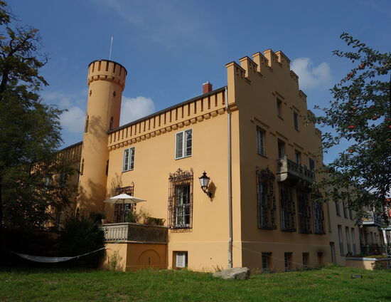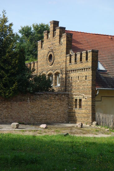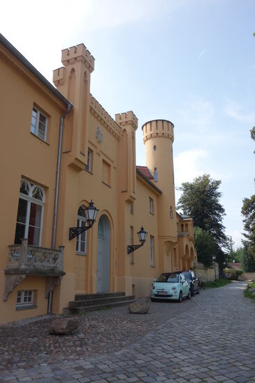 Erbaut um 1820. Fontane schrieb: "Das Schloß,in seiner gegenwärtigen Gestalt, wurde nach einem Schinkelschen Plane ausgeführt. Es zeigt eine Mischung von italienischem Kastell- und englischem Tudorstil."