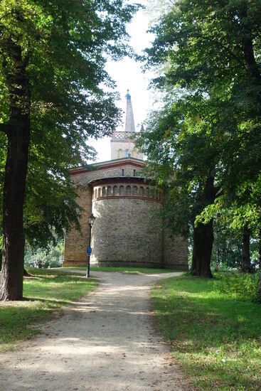 Aber die Rangeleien zwischen der Oberbaudeputation Schinkels und dem Königlichen Zaucheschen Baurat Redtel, der Einsparungen sowohl der Apsis, der Bogenhalle und materialseitig des Turmes vorsah, hatten zum Ergebnis, dass sich der Schinkelsche Entwurf durchsetzte. Und das war gut so!
