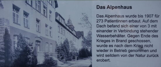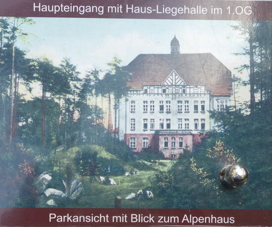 Frauenpavillon - die Bereiche waren jeweils nach Geschlechtern getrennt: südwestlich der Landstraße die Frauen-Heilstätten und -Sanatorien, nordöstlich derselben die Männer-Heilstätten und -Sanatorien.