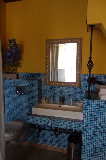 Leider sind nicht alle Vortellungen nach usnerem Geschmack. auch wenn Zimmer und Bad den Ansprüchen eines Innenarchitekten genügen würden, so sind sie doch nicht wirklich praktisch eingerichtet: Ablagemöglichkeiten für den Koffeninhalt und auch selbigen gibt es nicht, so dass Wäsche und auch Gepäck in der nicht benutzten Badewanne Platz findet. Auch m Bad ist die vonzwei Seiten betretbare Dusche zwar geräumig aber jewiels mit einem heute nicht mehr üblichen Duschvorhang versehen.