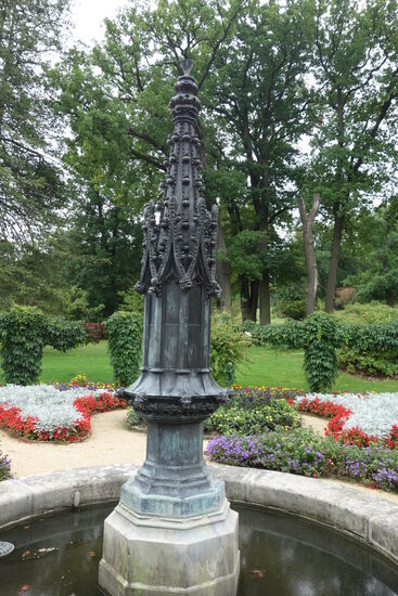 Die Widrigkeiten der Wasserversorgung, mit denen der Gartenarchitekt Lenné zu kämpfen hatte, waren durch den Bau des Dampfmaschinenhauses beseitigt: Fürst Pückler-Muskaus Gartengestaltung profitierte von der neuen Technik. Im Mai 1845 wurde die erste Fontänenanlage eingeweiht. Durch den Anbau einer neuen Maschinenhalle 1865 stand eine Dampfkraft von 65 PS für die Bewässerung des Parks zur Verfügung. Zu einem besonderen Schauspiel wurde die 40 Meter hohe Fontäne, die wie ein Geysir aus der Havel emporschoss. Nach dem Bau eines weiteren runden Wasserbeckens auf der Anhöhe, nun Achterbecken genannt, erhielt die Parkanlage eine ausreichende Wasserversorgung.