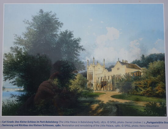 Das Kleine Schloss, ein ehemals einfaches Gartenhaus nahe dem Havelufer, wurde erstmals 1833/1834 nach Entwürfen von Ludwig Persius umgebaut. Eine zweite Umgestaltung erfolgte ebenfalls unter Leitung des Architekten Persius 1841/1842 nach detaillierten Angaben der Prinzessin Augusta im Stil der englischen Tudor-Gotik. Das weiße Gebäude diente dem ältesten Sohn des Prinzenpaares, Friedrich Wilhelm, dem späteren Kaiser Friedrich III., noch bis nach seiner Heirat mit Victoria als Wohnsitz. Anschließend beherbergte es Hofdamen und Gäste.