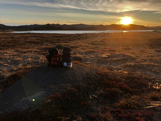 Im goldenen Licht der untergehenden Sonne wird das Zelt errichtet. Mit weiter sinkendem Sonnenball wird es merklich kälter. Ich lasse den heutigen Tag Revue passieren. Die Strecke war zwar lang, aber es hat einfach alles gestimmt: Herrliches Wetter, guter Weg und phantastische Aussichten. Und keine Mücken! Das hatte ich noch gar nicht erwähnt. Seit vier oder fünf Tagen, seit wir einen Pass überquert hatten, gab es plötzlich kein Mückenproblem mehr. Seltsam? Aber so steht es geschrieben! Vielleicht haben wir einfach nur zu sehr gestunken.