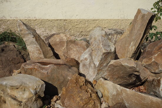 Ich heiße Buntsandstein und gehöre zu den ältesten Gesteinsbrocken, die es hier in der näheren und weiteren Umgebung an der Erdoberfläche gibt. Man schätzt mein Alter auf ungefähr 220 Millionen Jahre. Wenn Du mich einmal ganz genau ansiehst und befühlst, kannst Du erkennen, dass ich aus zigtausend kleinen Sandkörnchen bestehe.
