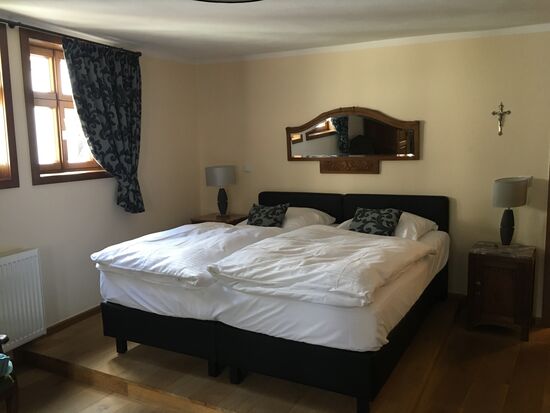 die drei Zimmer im OG sind mit alten Möbeln gemütlich eingerichtet - kein TV ist nicht von Nachteil!