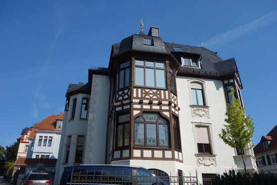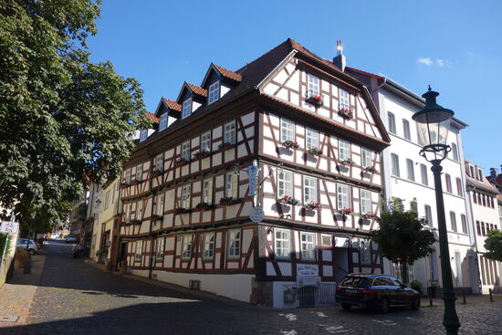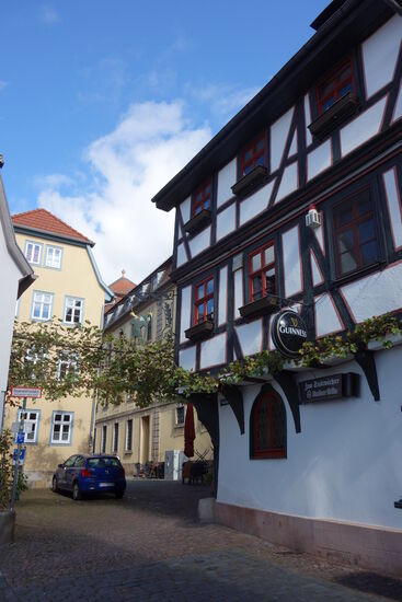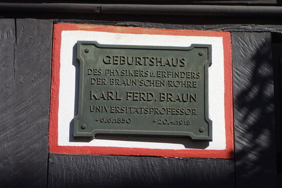 Wir befinden uns im Altstadtbeeich mit zahlreichenimposanten Fachwerkbauten. Hier handelt es sich um das Geburtshaus des Physikers Karl Ferdinand Braun (1850 - 1918) , der die Braun'sche Röhre erfunden hat.