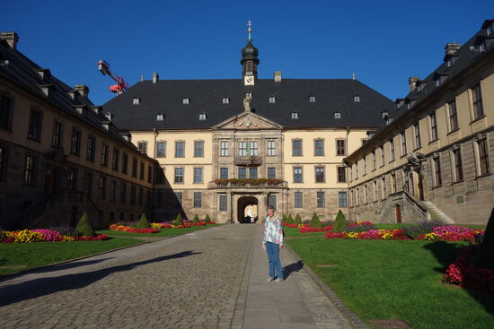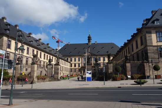 Nach wenigen Fachwerkgassen erereichen wir eine großen Platz, andem das barocke Fuldaer Stadtschloss liegt.
