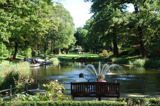 Wir wandeln bei prächtigem Wetter durch den weitläufigen von Mauern und Gittern umschlossenen Schlossgarten und gelangen zur Orangerie.