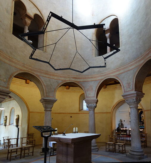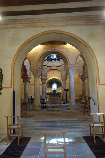 Von dem ursprünglichen karolingischen Bau hat sich nur die Krypta erhalten.